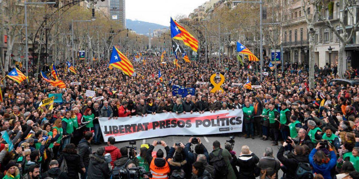 Det gikk ikke lange tiden etter at ex. president Carles Puigdemont ble arrestert av tysk politi før folk strømmet til gatene for å protestere. Anslagsvis var ca. 75 000 personer ute i gatene og protesterte i Catalonia søndag.