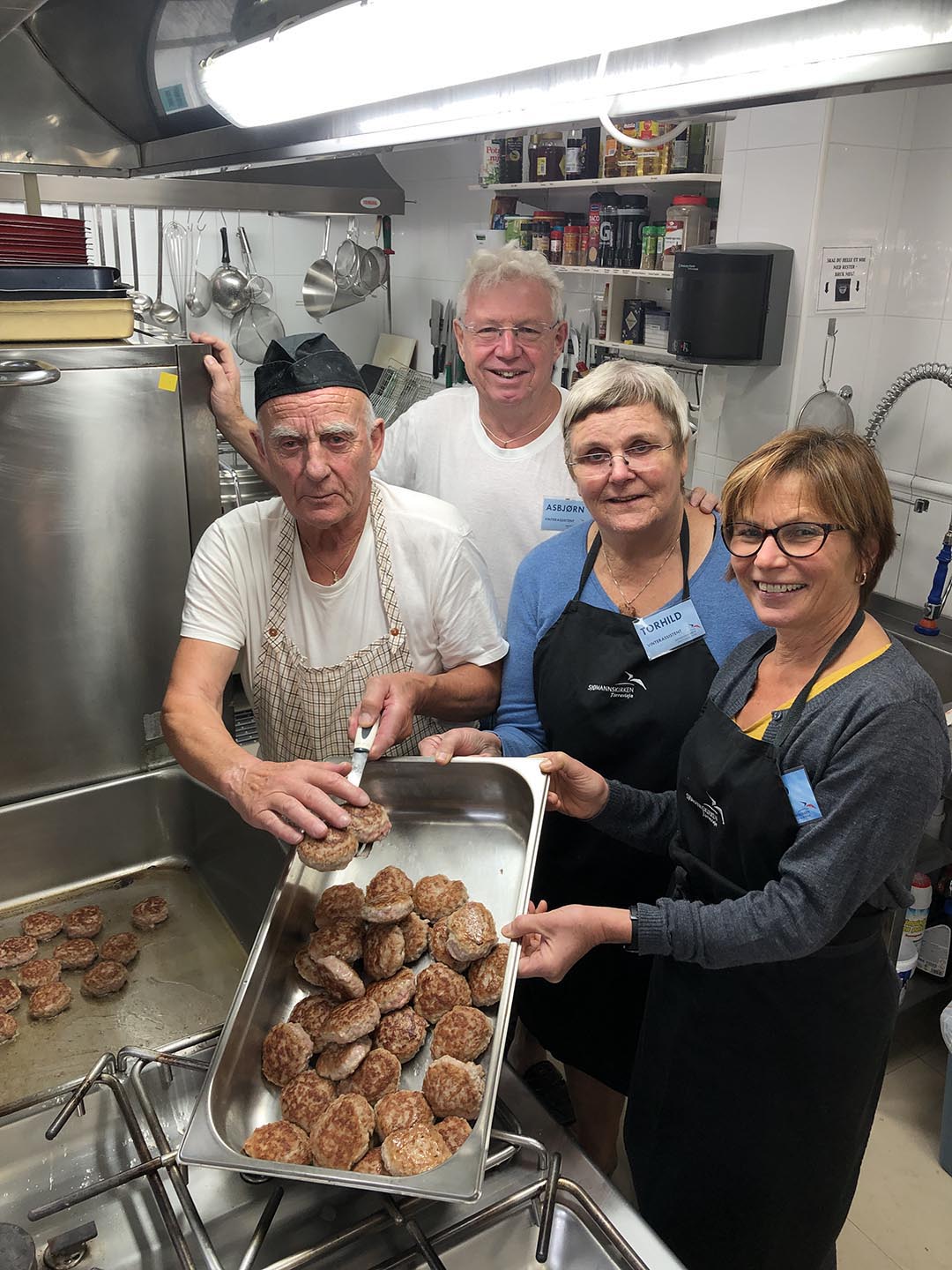 Medisterkakene er allerede sikret. Øyvind Arnestad er spesialist på å steke kjøttkaker. Asbjørn og Torhild Enoksen ønsker velkommen til julaften i kirken, sammen med vertskap Ingvild Henden Håker.