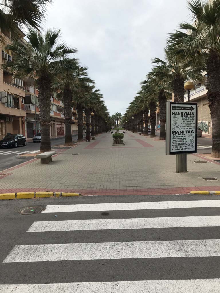 Folketomme gater i Spania om dagen. Disse bildene er fra Guardamar del Segura. Bjørn J. Klein er blitt jaget inn av politiet ved to anledninger og vil nå holde seg innendørs frem til avreise til Norge om en uke.
